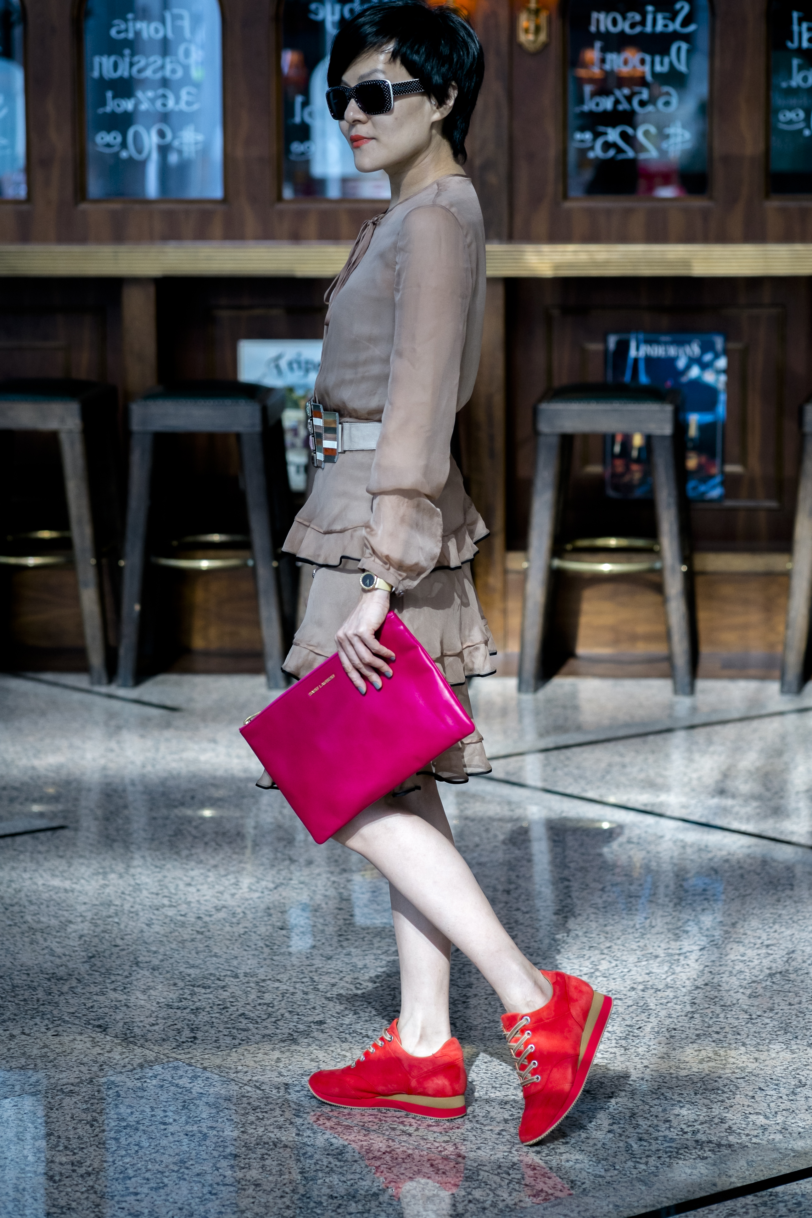 整個鞋履系列的設計靈感源自七十年代,主要以全皮或麖皮為物料,我覺得無論是配襯清新的夏日服飾還是深沉的冬裝,色彩鮮艷的Sneakers有效提升整個total look的風格。此外,MM01的1cm増高鞋墊是我最欣賞的地方,除了令人增加自信外,這個增高鞋墊能大大提升Sneakers的舒適度,加上鞋身非常輕巧,是我四出東奔西跑的最佳伙伴。無論平日配襯出outdoor shooting還是今日meeting的feminine look也同樣好看。_DSF5728