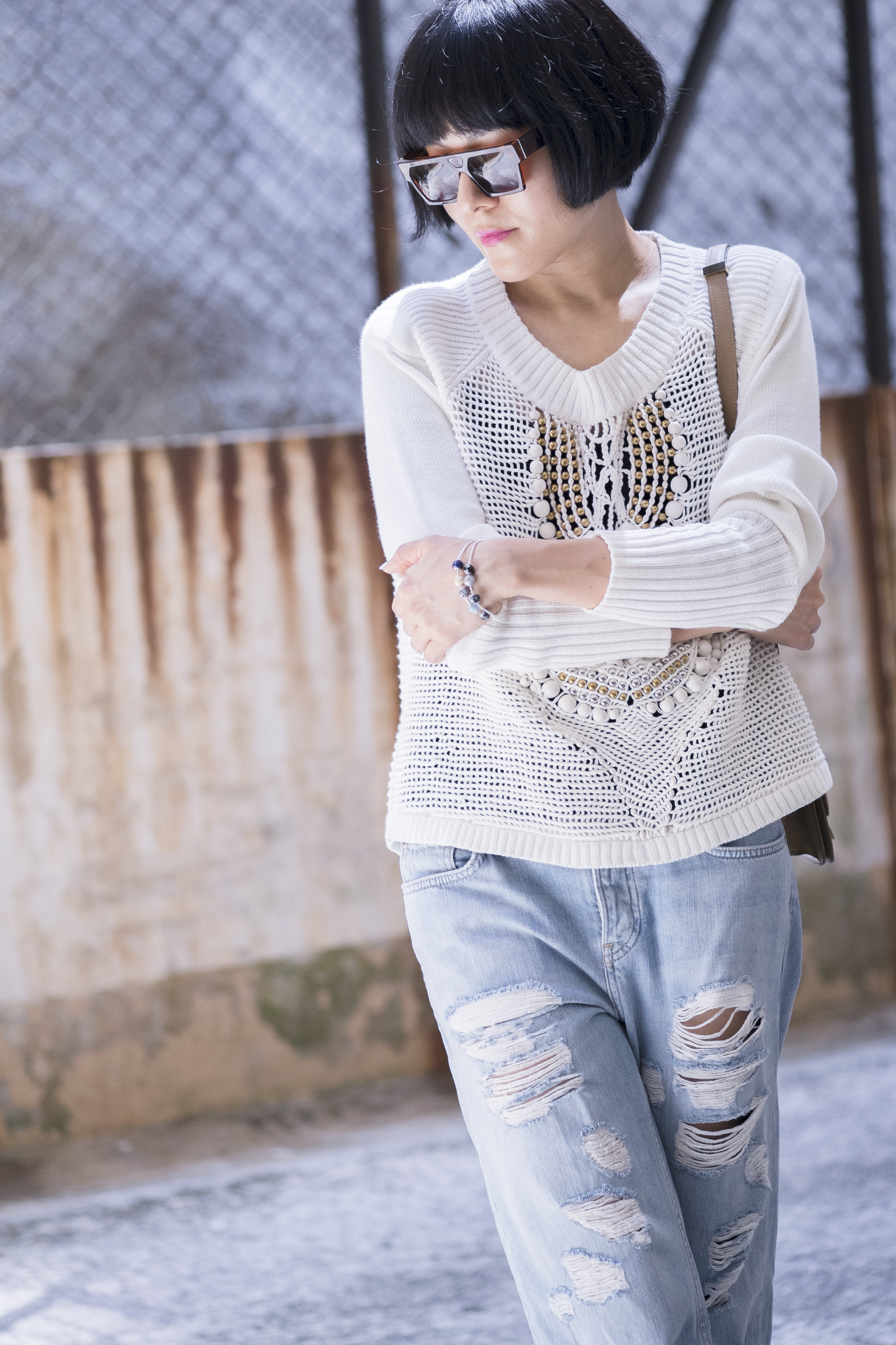 踏入立秋之後,天氣開始變得乾爽和涼快,作為時裝人當然要率先穿上秋裝展示一下自己的時尚態度,我一向都喜歡隨性型格的打扮,所以秋季流行帶點Edgy和Glam Rock元素的服飾正合我心意,一條boy-friend剪裁的破洞牛仔褲更加是我wardrobe內的必備單品,它靈活百變的襯法可營造多種不同形象,為你亦型格亦華麗的造型帶來亮點。