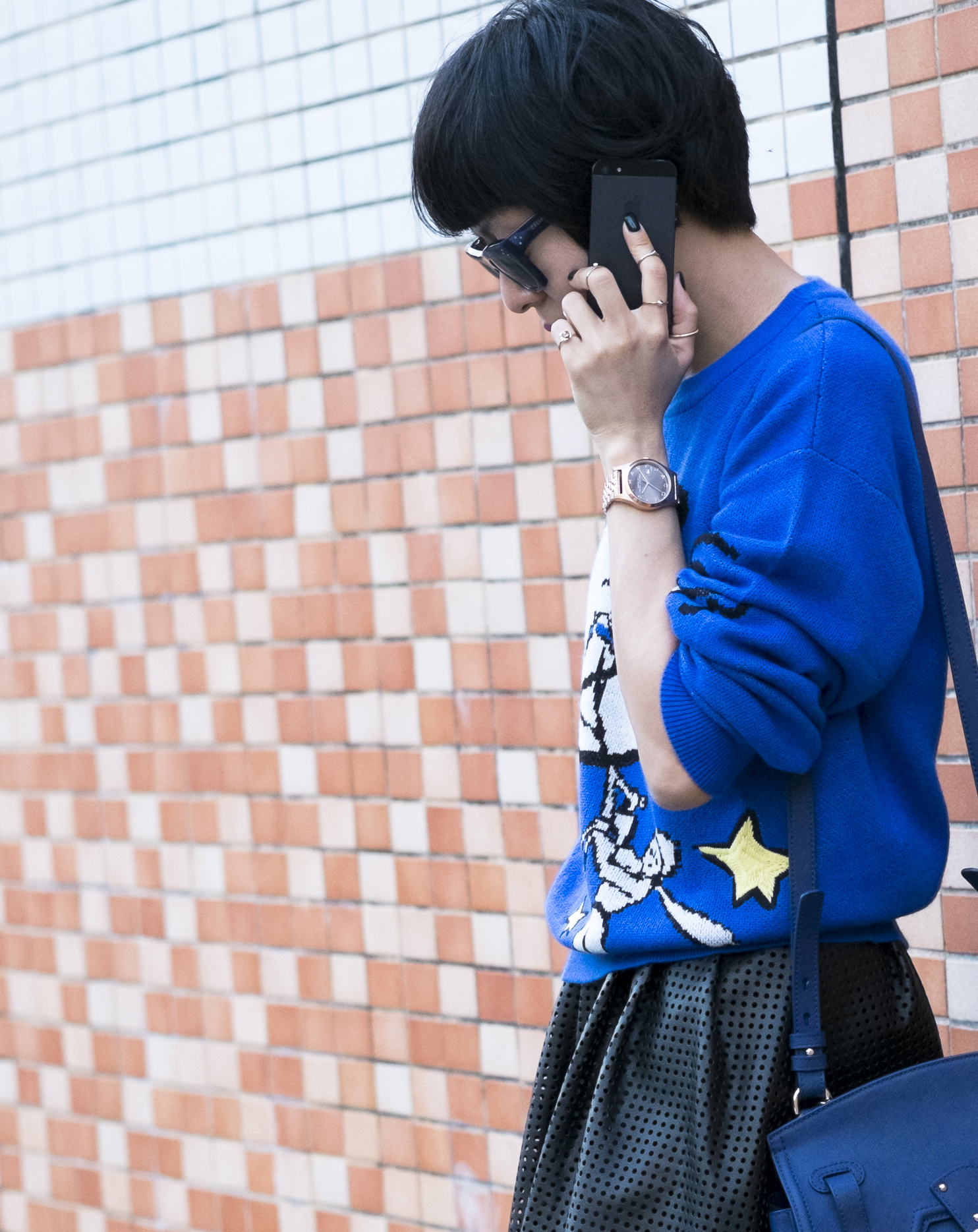 b+ab X LE PETITE PRINCE cardigan; ALAND black net skirt; CELINE sunglasses; MARC BY MARC JACOBS watch; MONICA VINADER gold bracelet; H&M rings; TUSCAN’S shoulder bag; NIKE airmax sneakers.