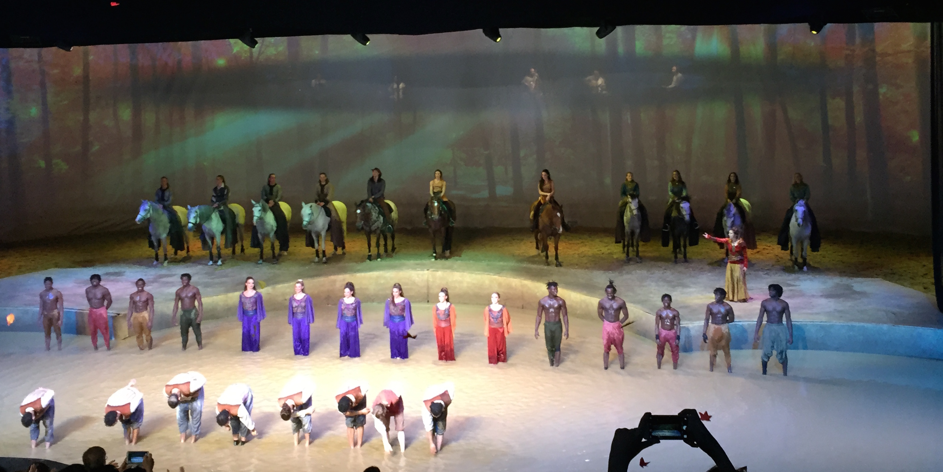 40匹馬明星在不同環節分別出場,在50米長的舞台奔馳以及跟騎師拍檔合力演出,當中亦有些蝦碌趣事發生,有失魂的馬兒多次走錯方位;有百厭愛玩的白馬輕咬前馬的屁股,非常可愛!