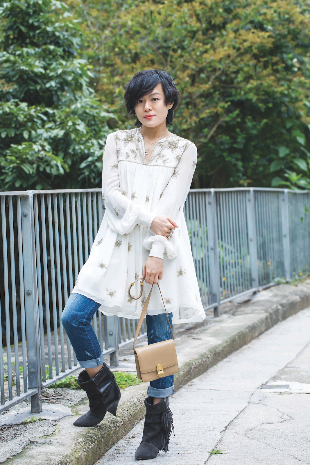 SAINT LAURENT dress JOHN HARDY necklace ALL SAINT ring DIESEL jeans CELINE bag ISABEL MARANT X H&M boots