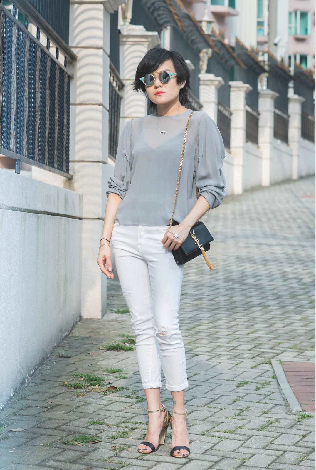 Look5:  HENRY HOLLAND sunglasses ACNE top ZARA jeans APM MONACO bangle  SAINT LAURENT bag SERGIO ROSSI sandals