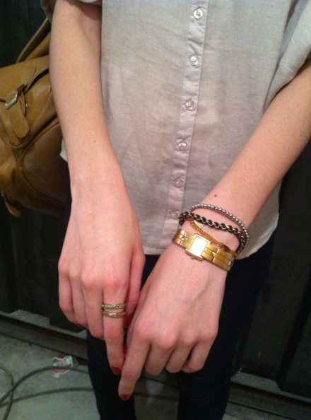 Fendi top; A.T by ATSURO TAYAMA skirt; ASOS chunky necklace, belt & ring; Metal bangle (bought from Cesky Krumlov); David Yurman silver bangles; Forevermark diamond bracelet; Yves Saint Laurent handbag; Alexander Wang military green wedges.